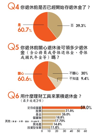 6成的人關心退休後可以領多少退休金,卻有42.7%的人不清楚退休前該存到多少錢才夠退休後使用!而且是年紀愈大者,比率愈高。