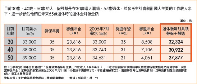 一般上班族有勞保年金與勞退年金可領,若需詳細計算,可到勞委會網站試算:①勞保老年年金www.bli.gov.tw/cal/oldpay.asp;②勞工個人退休金專戶勞退年金web.cla.gov.tw/trial。